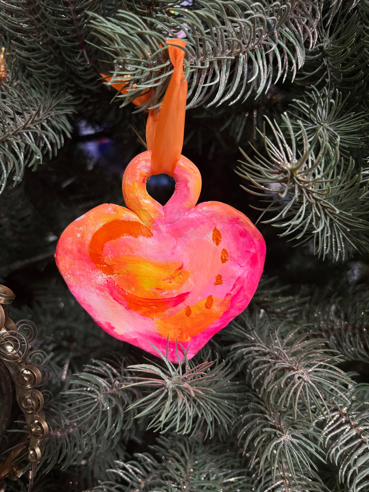 This ornament was hand sculpted and painted by yours truly and sealed with a weatherproof sealant ensuring the paint will last a lifetime. The ornament is made out of air dry clay and approximately 2.5 inches, finished with a ribbon made out of recycled fabric.